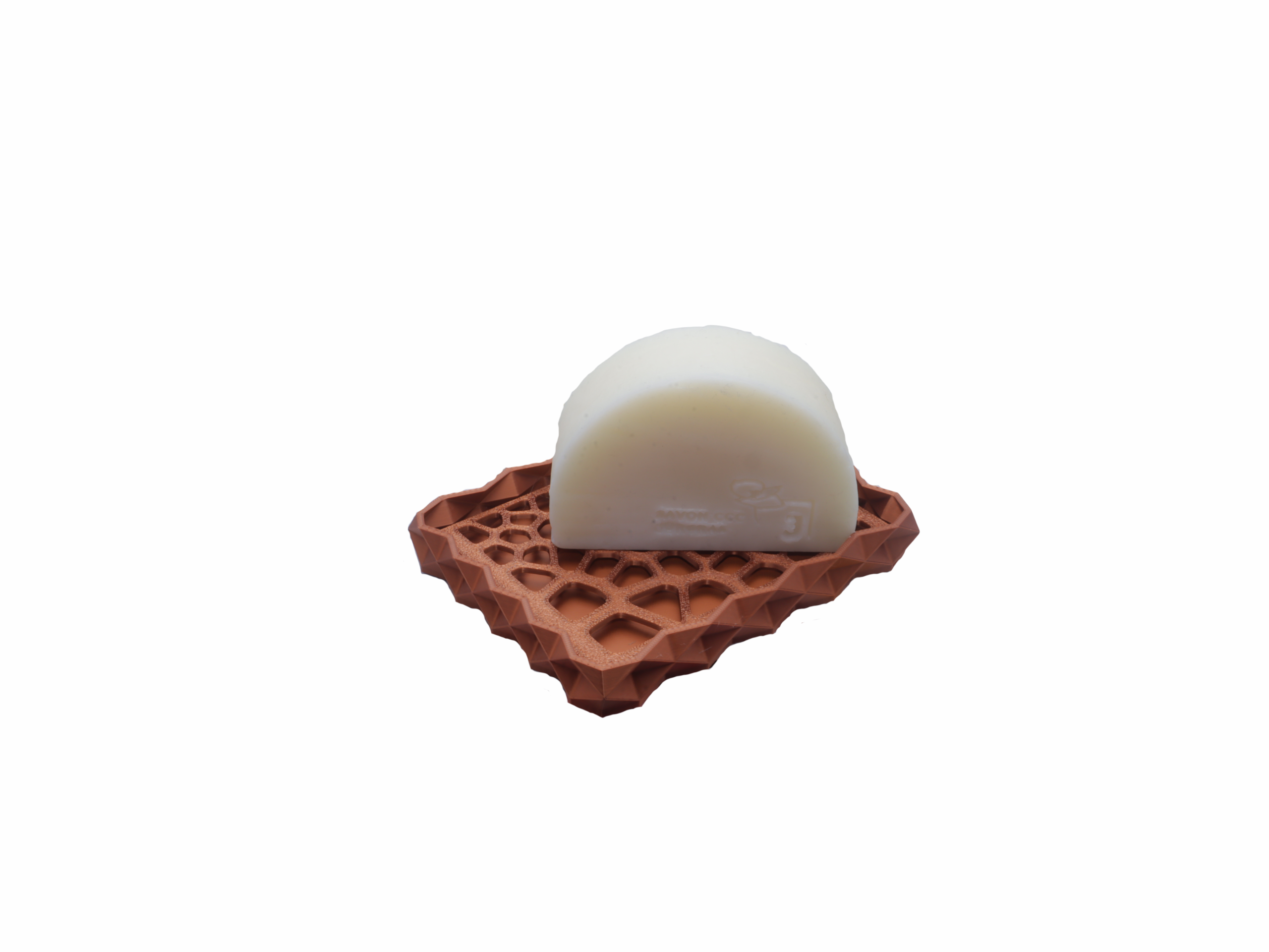Ces portes savon sont de fabrication française et imprimés en 3D (c’est-à-dire réalisée couche par couche) ils sont réalisés en PLA, une matière d’origine végétale à base de maïs et de canne à sucre, biodégradable et respectueuse de l’environnement.